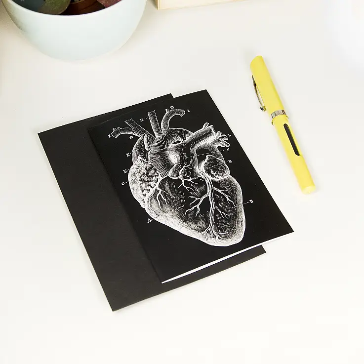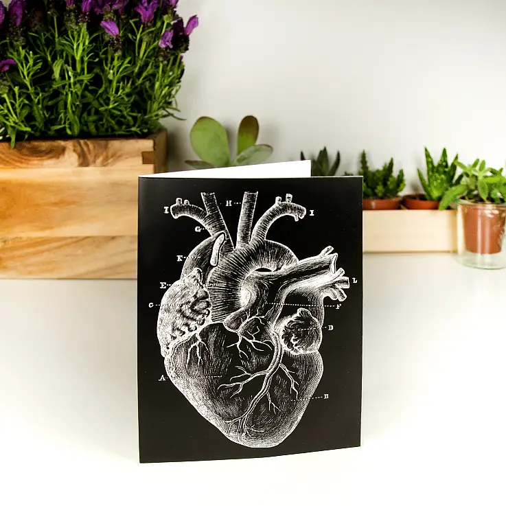 - Grußkarte mit einem aufgedruckten anatomischen Herz.