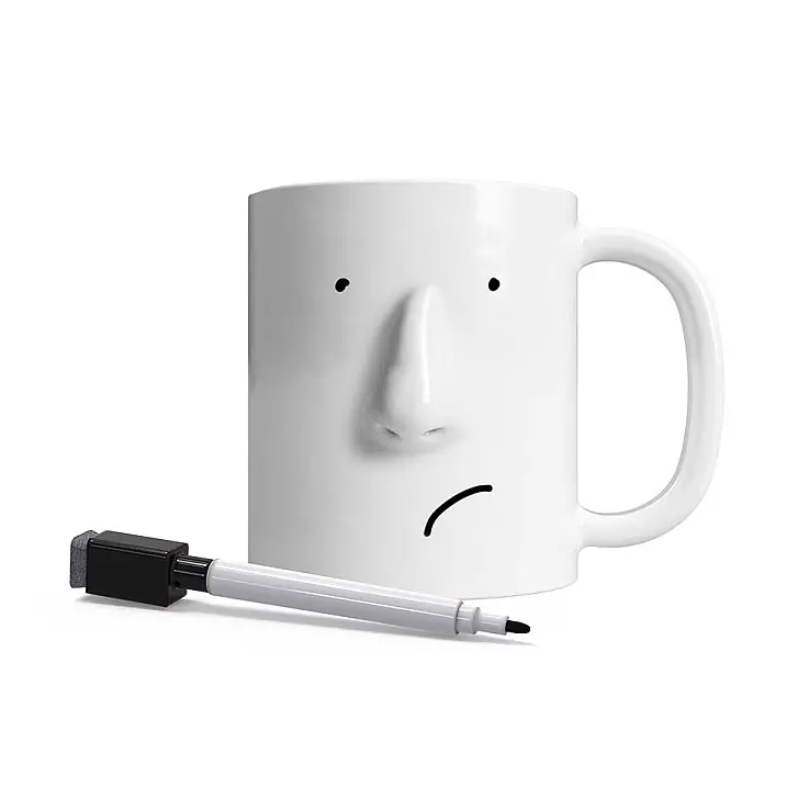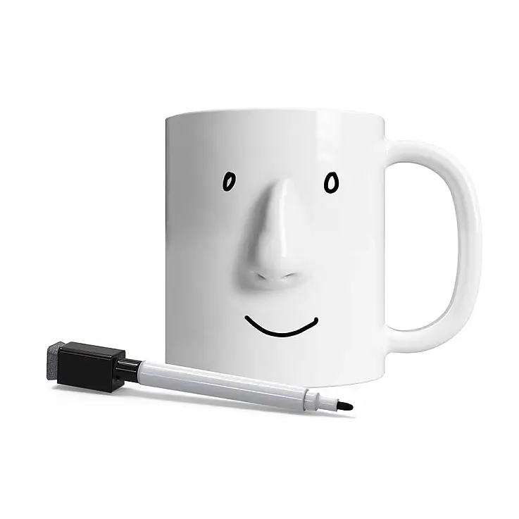 Wie fühlst du dich heute? Sage es der Welt, indem du ein Gesicht auf diese originelle Tasse mit Nase zeichnest. Enthält Stift mit Abwischteil, damit du es jederzeit ändern kannst.