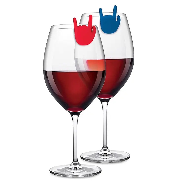 Mit diesen Glasmarkern in Form einer maloischen Hand können Sie verhindern, dass jemand auf Ihren Partys das falsche Glas erwischt.