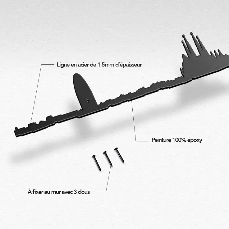 Diese Stadtsilhouetten sind aus Stahl gefertigt und schwarz lackiert, um den Eindruck zu erwecken, dass man die Stadt nachts aus der Ferne sieht, und sie sehen unabhängig von den Farben aus, die die Räume Ihres Hauses schmücken.
