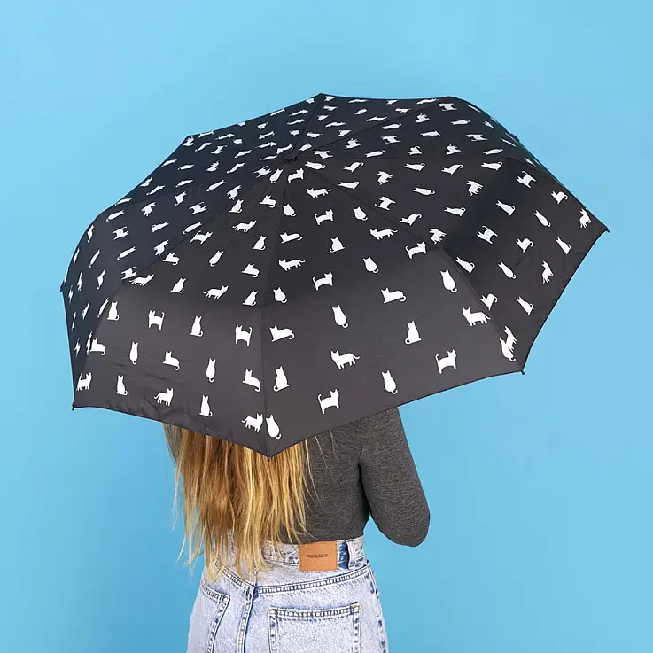 Schützen Sie sich vor dem Regen mit diesem originellen, klappbaren Regenschirm mit einem Bezug in Form eines Tieres. Es gibt sechs Modelle: Katzen in verschiedenen Farben, Hund, Fledermaus und Affe.