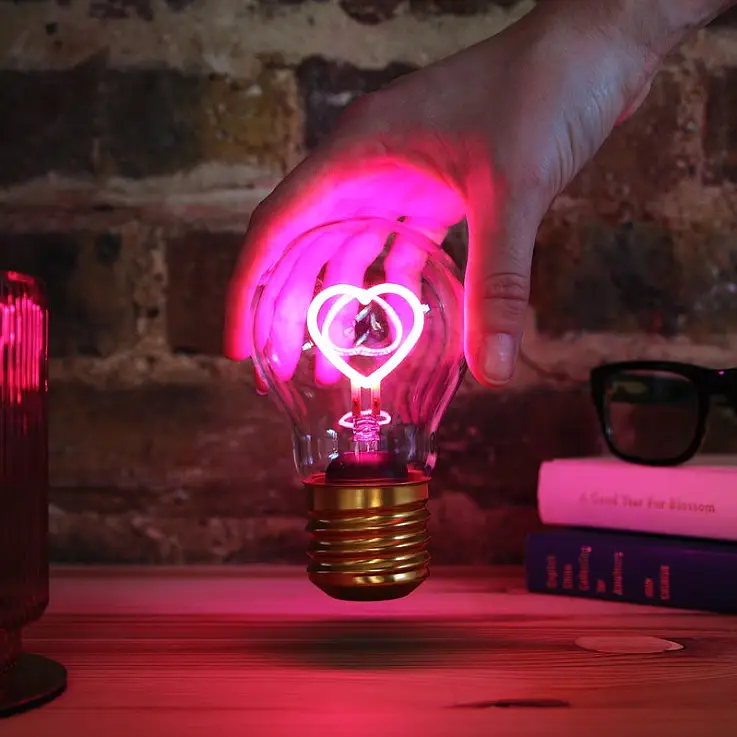 LED-Glühbirne mit Glühfaden in Herz-, Regenbogen- oder Sternform