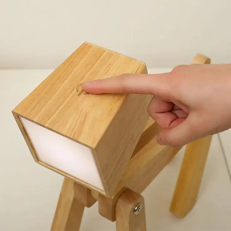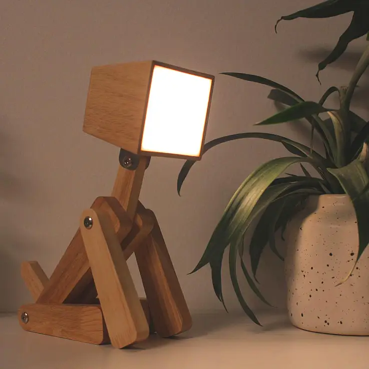 Sie ist aus Holz gefertigt und hat eine LED-Beleuchtung, so dass sie sehr wenig Energie verbraucht. Sie können ihn aufstellen, wo immer Sie wollen, denn er muss nicht an die Steckdose angeschlossen werden, sondern hat einen Akku, der mit dem mitgelieferten USB-Kabel aufgeladen werden kann.
