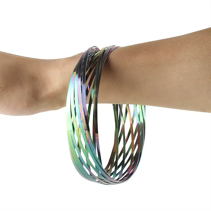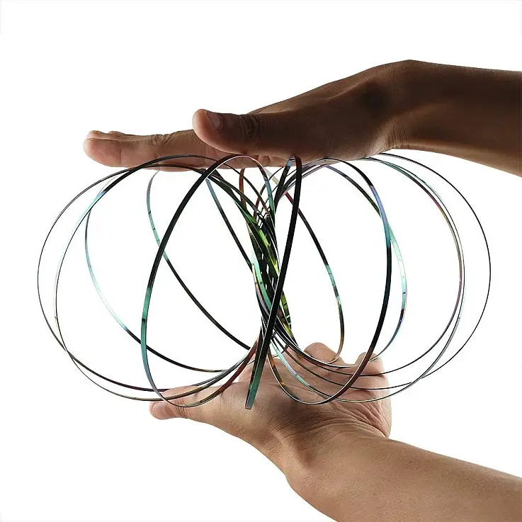 Der Slidit-Zauberring ist ein ebenso einfaches wie unterhaltsames Spiel. Es handelt sich um einen kinetischen Bewegungsring, der auf der Grundlage eines gewundenen Metallbandes aufgebaut ist, das einen Toroid erzeugt.