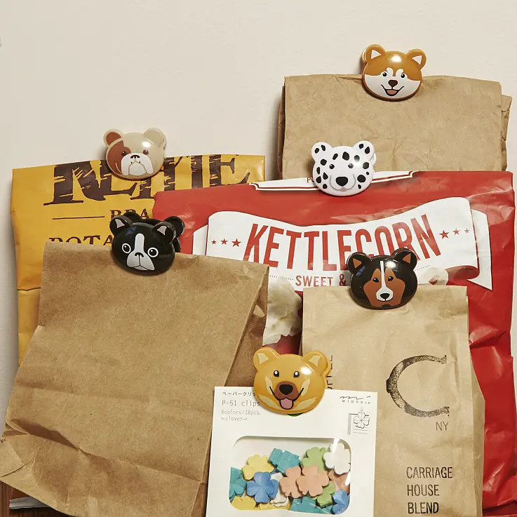 Halten Sie Ihre Lebensmittel frisch und ordentlich mit diesen schönen und funktionellen Tütenclips, die in sechs verschiedenen von Katzen oder Hunden inspirierten Farben erhältlich sind. Entworfen vom Formnation Studio für Kikkerland.