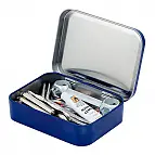 Das Ganze wird in einer Box im Taschenformat geliefert, so dass Sie es immer bei sich tragen können, wenn Sie mit Ihrem Fahrrad unterwegs sind. Die Box hat ein sehr schönes Vintage-Design in Blau und Weiß auf einer Edelstahlbox mit den Maßen 8 x 11 x 3 cm, die perfekt auf den Rücken passt (egal ob im Rucksack oder in der Tasche), wenn man unterwegs ist.